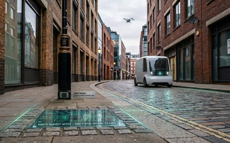 • The Feature: Kinetic Energy Harvesting & AI-driven Grid.